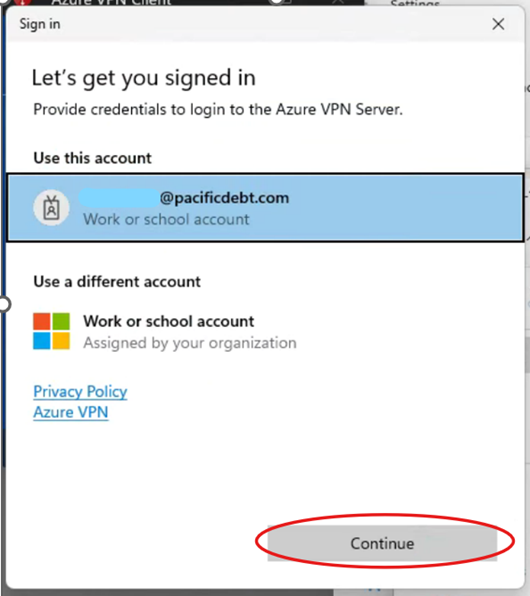 - Open the Azure VPN Client on your computer. You can find it by searching in the Start Menu.